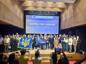 Hosted at Alliance Française de Delhi, the evening began with a minute of silence in memory of those who have lost their lives defending Ukraine’s freedom and sovereignty.